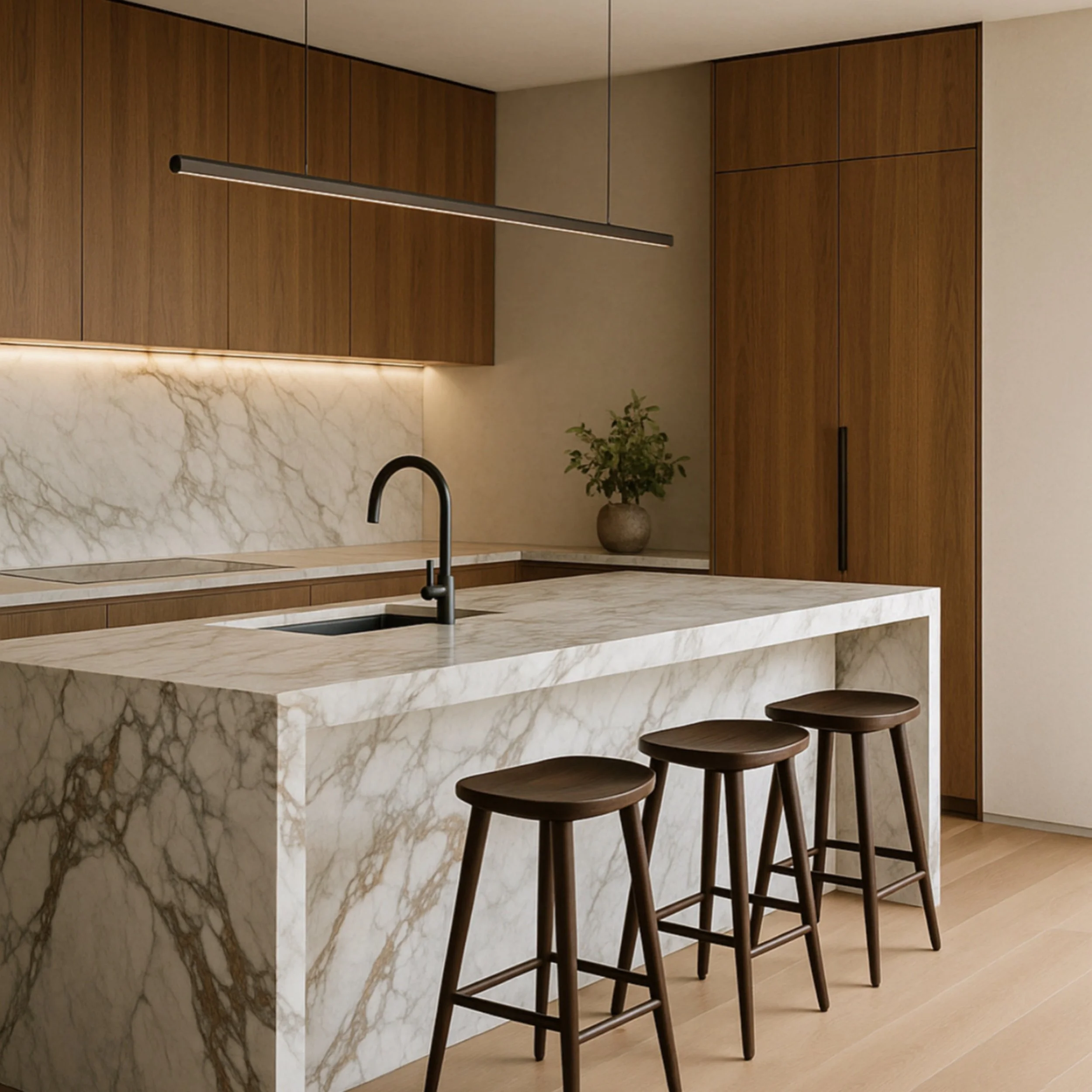 In 2025, Bortolotto Interiors continues to redefine refined living through kitchen design. This year’s direction celebrates the harmony between natural stone, warm timber, and minimalist detailing—a balance of enduring craftsmanship and modern function.